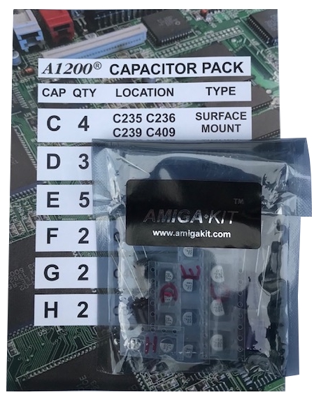 New A1200™ Capacitor Pack for repair/servicing of an Amiga 1200.