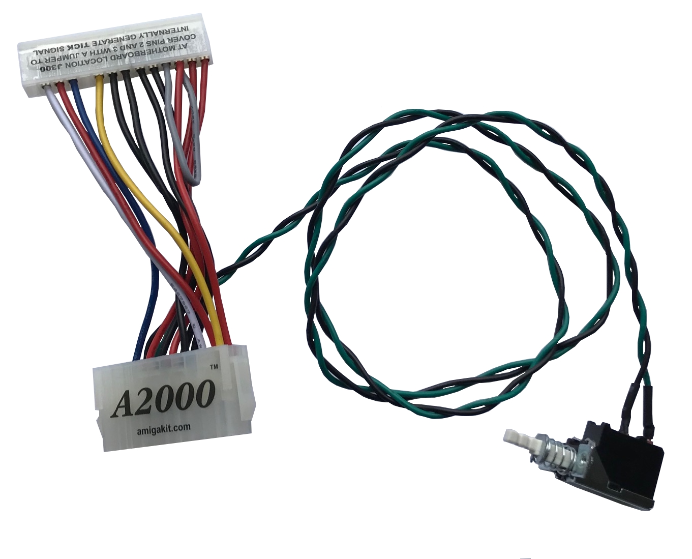 Cable wire thickness is 18 AWG. When using this cable, set J300 on A2000 motherboard to internally generate TICK signal.