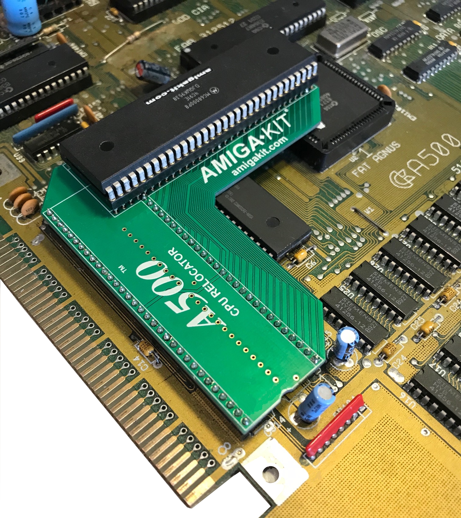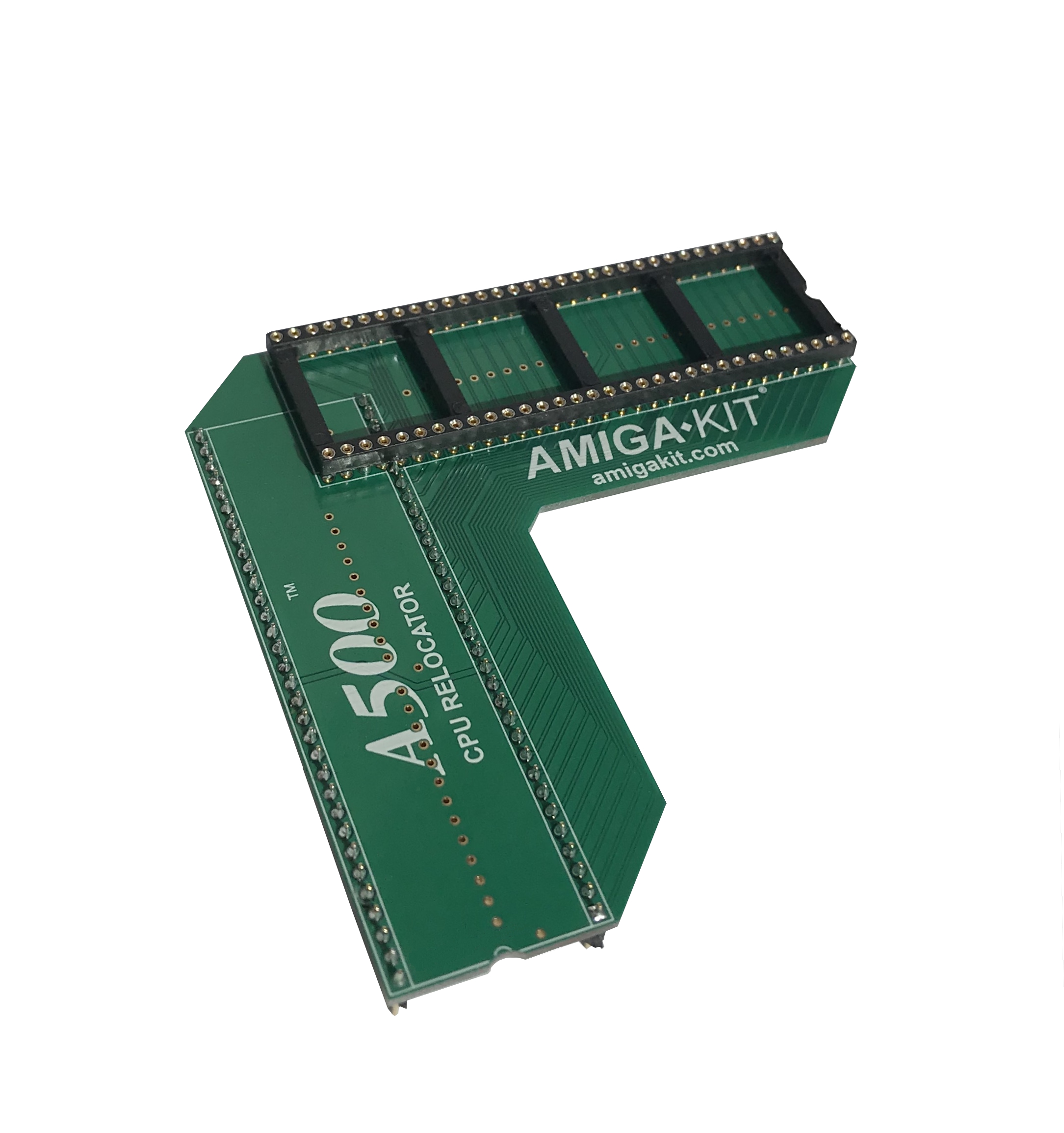 Compatible with the Commodore-Amiga 500 computer. This adapter can be used with any computer featuring a socketed 64-pin 68000 CPU to move it by 90 degrees (assuming no obstructions from case or surrounding components).