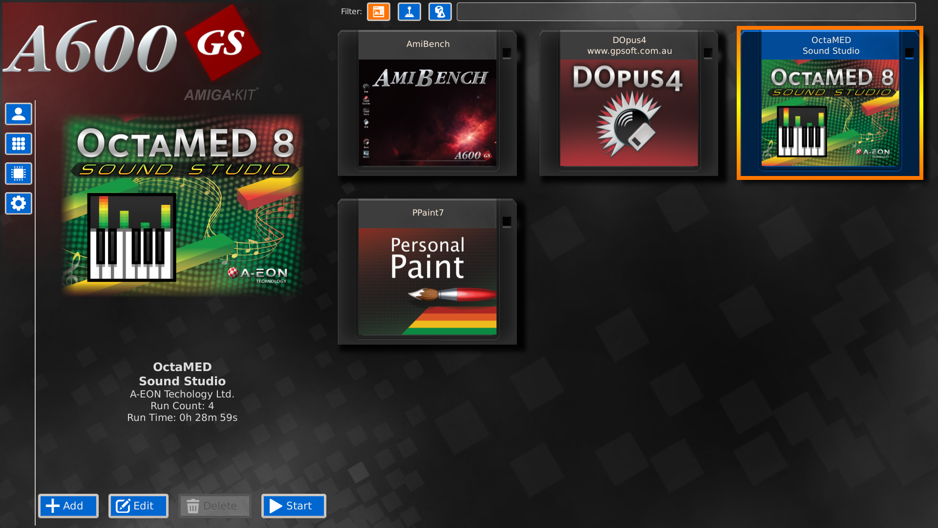 Games menu: add, edit & launch ADF/HDF/WHDBoot games, scene demos and apps (OCS, ECS & AGA).