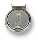 Button cell PCB mounted lithium battery with tagged terminals.