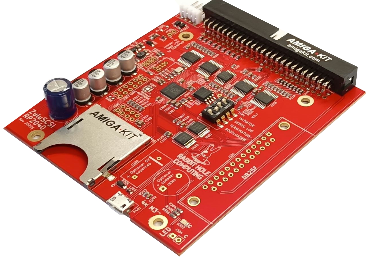 ZuluSCSI is a new generation of file-based SCSI HDD & CD-ROM emulators, and represents a fusion of SCSI2SD V5, V6, and concepts from other open source SCSI emulators. Hard drive and CD-ROM drive images are stored on a standard FAT32 or exFAT-formatted SD card. The ZuluSCSI firmware looks for file names which adhere to a simple but powerful naming convention, and presents them as the drives to the SCSI host. Each image file represents a SCSI drive.