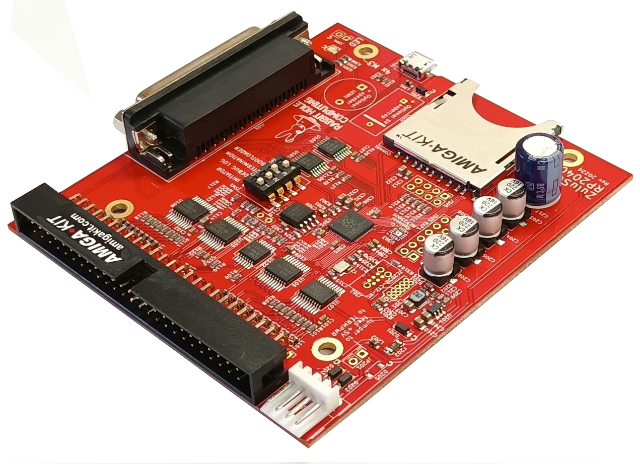 ZuluSCSI RP2040 is a new member of the ZuluSCSI product family, and is powered by the Raspberry Pi Foundation's RP2040 microcontroller, a dual-core 133MHz ARM Cortex-M0+ processor. Supports synchronous and asynchronous transfers, with read speeds up to eight megabytes/second. A SCSI controller with FAST SCSI and synchronous mode is required to achieve maximum speeds.